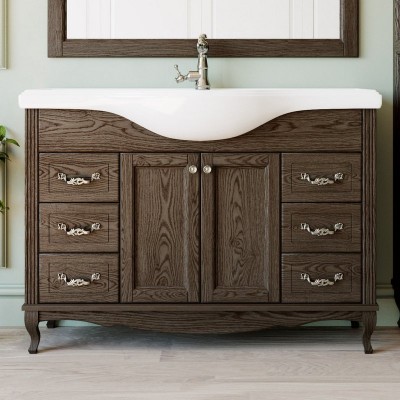 - Комплектация: Тумба под раковину ValenHouse Эллина 120, кальяри, 4 ящика, 1 дверца, ручки хром; Мебельная раковина Kirovit Классик 120