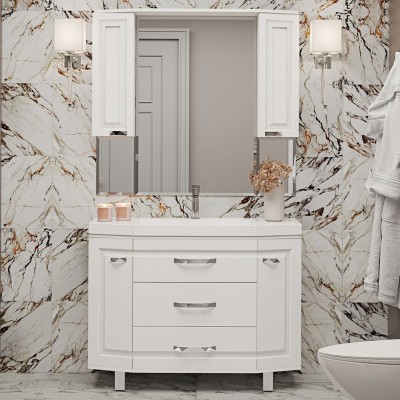 - Комплектация: Тумба под раковину ValenHouse Эллина 120, слоновая кость, фурнитура хром; Мебельная раковина Kirovit Классик 120