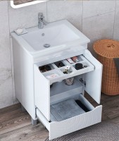 - Комплектация: Тумба под раковину Vigo Grani 75, напольная, 2 дверцы, 1 ящик, белая; Мебельная раковина Kirovit Оскар, 75