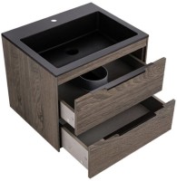 - Комплектация: Тумба под раковину Vincea Chiara 2D, 60, подвесная, 2 ящика, темный дуб; Мебельная раковина Vincea, 60, черная