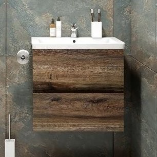 - Комплектация: Тумба под раковину Vincea Luka 60, подвесная, 2 ящика, темный дуб; Мебельная раковина Vincea, 60, белая
