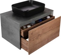 - Комплектация: Тумба под раковину Vincea Mesa 80, дуб табак, бетон; Накладная раковина Vincea VBS-105MB, 50 матовая черная