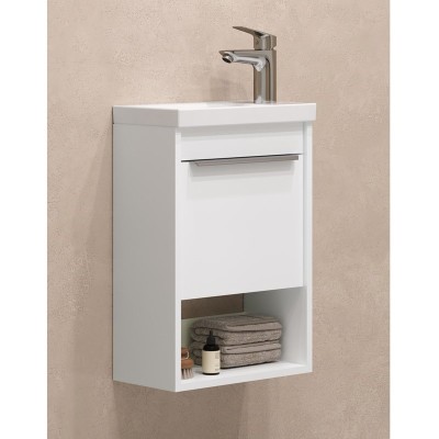 - Комплектация: Тумба под раковину без столешницы Тумба под раковину без столешницы AQUATON Хоуп 40 подвесная, 1 створка, хаки; Раковина маленькая в туалет Раковина маленькая в туалет Santek Миранда 1.WH30.2.500 40 глянцевая белая, прямоугольная
