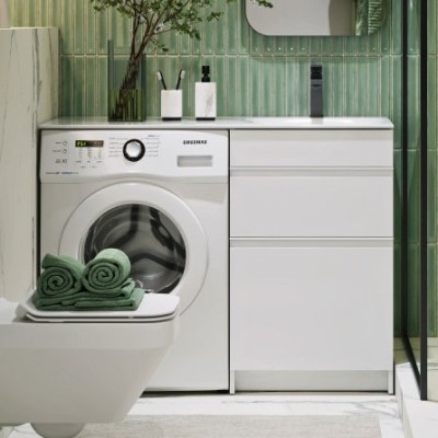 - Комплектация: Тумба под раковину без столешницы Тумба под раковину без столешницы Aqwella Duet 53 напольная, под стиральную машину, белая; Раковина над стиральной машиной Раковина над стиральной машиной Aqwella Forma 115 L белая, прямоугольная, со столешницей справа, с