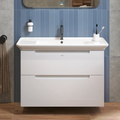 - Комплектация: Тумба под раковину без столешницы Тумба под раковину без столешницы BelBagno Uno 100 подвесная, 1 ящик, bianco opaco; Мебельная раковина Мебельная раковина BelBagno BB-8099-100 накладная, глянцевая белая, прямоугольная, фаянс