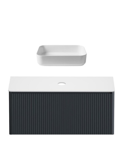 - Комплектация: Тумба под раковину без столешницы Тумба под раковину без столешницы Belux Анжело Н 110-02 напольная, матовая черная; Мебельная раковина Мебельная раковина Belux Анжело 112 накладная, глянцевая белая, прямоугольная, искусственная мрамор
