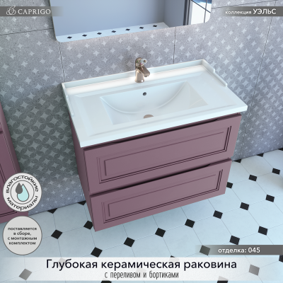 • Комплектация: Тумба под раковину без столешницы Тумба под раковину без столешницы Caprigo Wales Смальти 80 олива; Мебельная раковина Мебельная раковина Caprigo Y 82 накладная, глянцевая белая, прямоугольная, фарфор