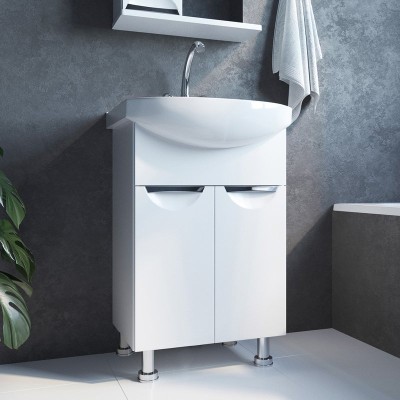 - Комплектация: Тумба под раковину без столешницы Тумба под раковину без столешницы Runo Эконова 60 напольная, белая, крем; Мебельная раковина Мебельная раковина Rosa Уют 62 накладная, белая, полукруглая, фаянс