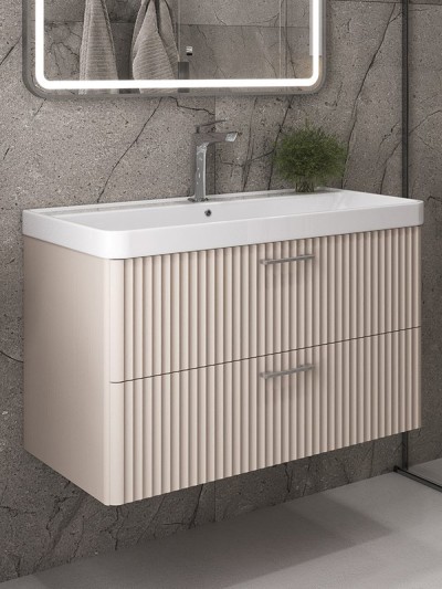 - Комплектация: Тумба под раковину без столешницы Тумба для ванной подвесная Snob R 890х390х500, Bianco, SNR90/39W; Мебельная раковина Раковина накладная Ceramicanova Compact 910x395x170, белый, CN7030