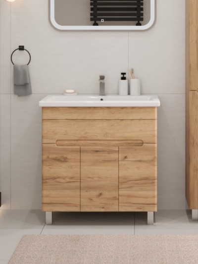 - Комплектация: Тумба под раковину без столешницы Тумба под раковину без столешницы SanStar Модена 80 напольная, графит софт, дуб вотан; Мебельная раковина Мебельная раковина Cersanit Como 80 накладная, белая, прямоугольная, фарфор