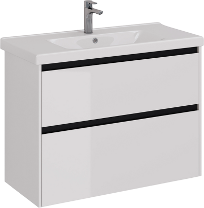 - Комплектация: Тумба под раковину без столешницы Тумба под раковину без столешницы SanStar Ориана 80 подвесная, серая; Мебельная раковина Мебельная раковина Dreja Harmony 80 накладная, глянцевая белая, прямоугольная, фарфор