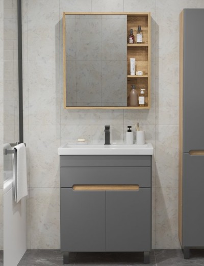 - Комплектация: Тумба под раковину без столешницы Тумба под раковину без столешницы Style Line Матис 80 напольная, белая матовая; Мебельная раковина Умывальник ASTI 800x450