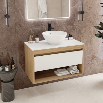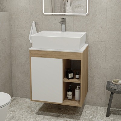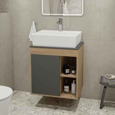 - Комплектация: Тумба под раковину со столешницей Тумба подвесная Teymi Nura 60, дуб эврика/графит матовый T60529; Накладная раковина Раковина накладная Teymi Aina 49 с полочкой под смеситель, белая T50002
