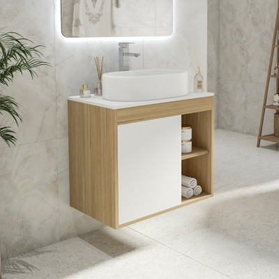 - Комплектация: Тумба под раковину со столешницей Тумба подвесная Teymi Nura 70, дуб эврика/графит матовый T60530; Накладная раковина Раковина накладная Teymi Iva 52, белая T50602