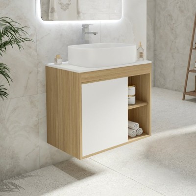 - Комплектация: Тумба под раковину со столешницей Тумба подвесная Teymi Nura 70, дуб эврика/графит матовый T60530; Накладная раковина Раковина накладная Teymi Solli 51 artceramic, белая T50209