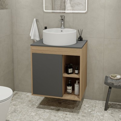- Комплектация: Тумба под раковину со столешницей Тумба подвесная Teymi Ritta 65, ящик с доводчиком, цвет дуб эврика/графит матовый T60524; Накладная раковина Раковина накладная Teymi Lori 40, белая T50505