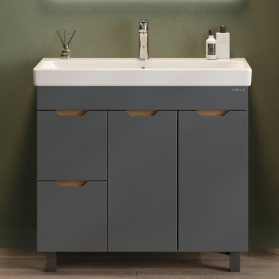 - Комплектация: Тумба под раковину со столешницей Тумба подвесная Teymi Ritta 85, ящик с доводчиком, цвет дуб эврика/графит матовый T60532; Накладная раковина Раковина накладная Teymi Lina D41, белая T50105