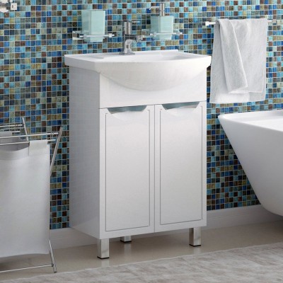 - Комплектация: Тумба под раковину без столешницы Тумба под раковину без столешницы Vigo Hoska 45 1 дверца, белая; Мебельная раковина Мебельная раковина Rosa Уют 46 накладная, белая, полукруглая, фаянс