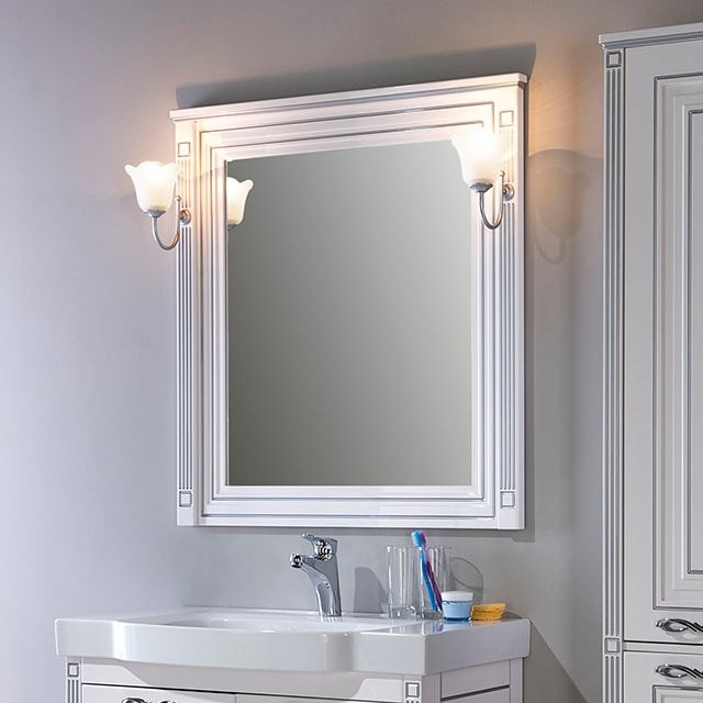 • Комплектация: Зеркало Aquanet Паола, 90 белое, без светильника; Светильник в ванную Aquanet Луизиана New EV0002CD хром 2 шт.