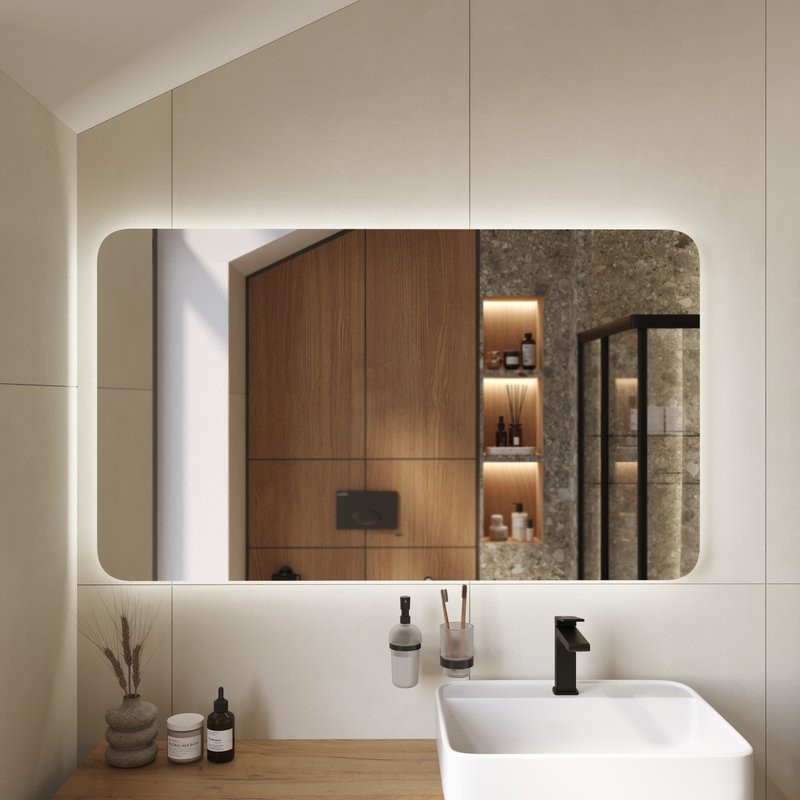 - Комплектация: Зеркало DIWO 120 с подсветкой, большое, LED подсветка, прямоугольное, инфракрасный выключател