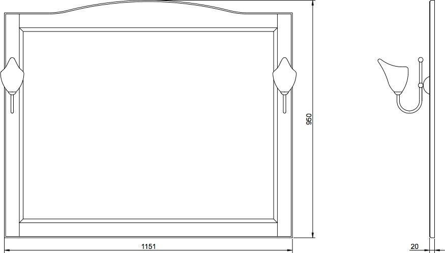 - Комплектация: Зеркало ValenHouse Эллина, 120 слоновая кость; Основа светильника ValenHouse Персей - 1 хром, без плафона,1 шт