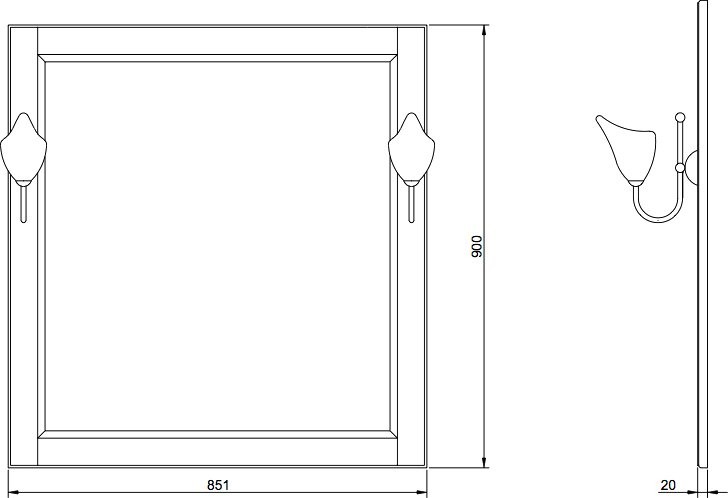 • Комплектация: Зеркало ValenHouse Лиора, 90 слоновая кость